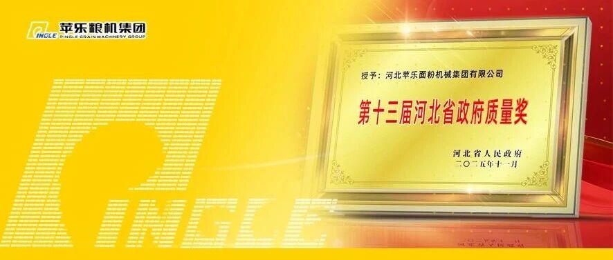 喜報!蘋樂糧機集團再獲殊榮 榮膺第十三屆河北省政府質量獎